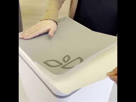 Grau-weißer Deckelaufsatz mit leicht strukturierter Oberfläche und modernem Trelino Logo.