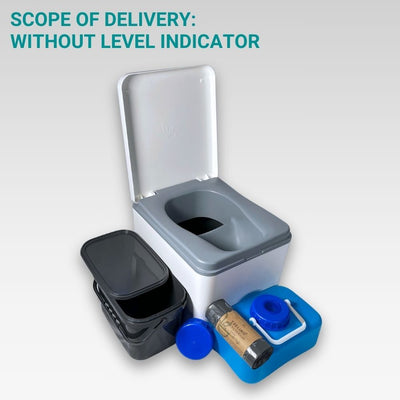 The separation insert directs urine into a canister, while solid waste is collected in a separate container. For easier disposal, this container needs to be equipped with a trash bag. More about the function of a composting toilet