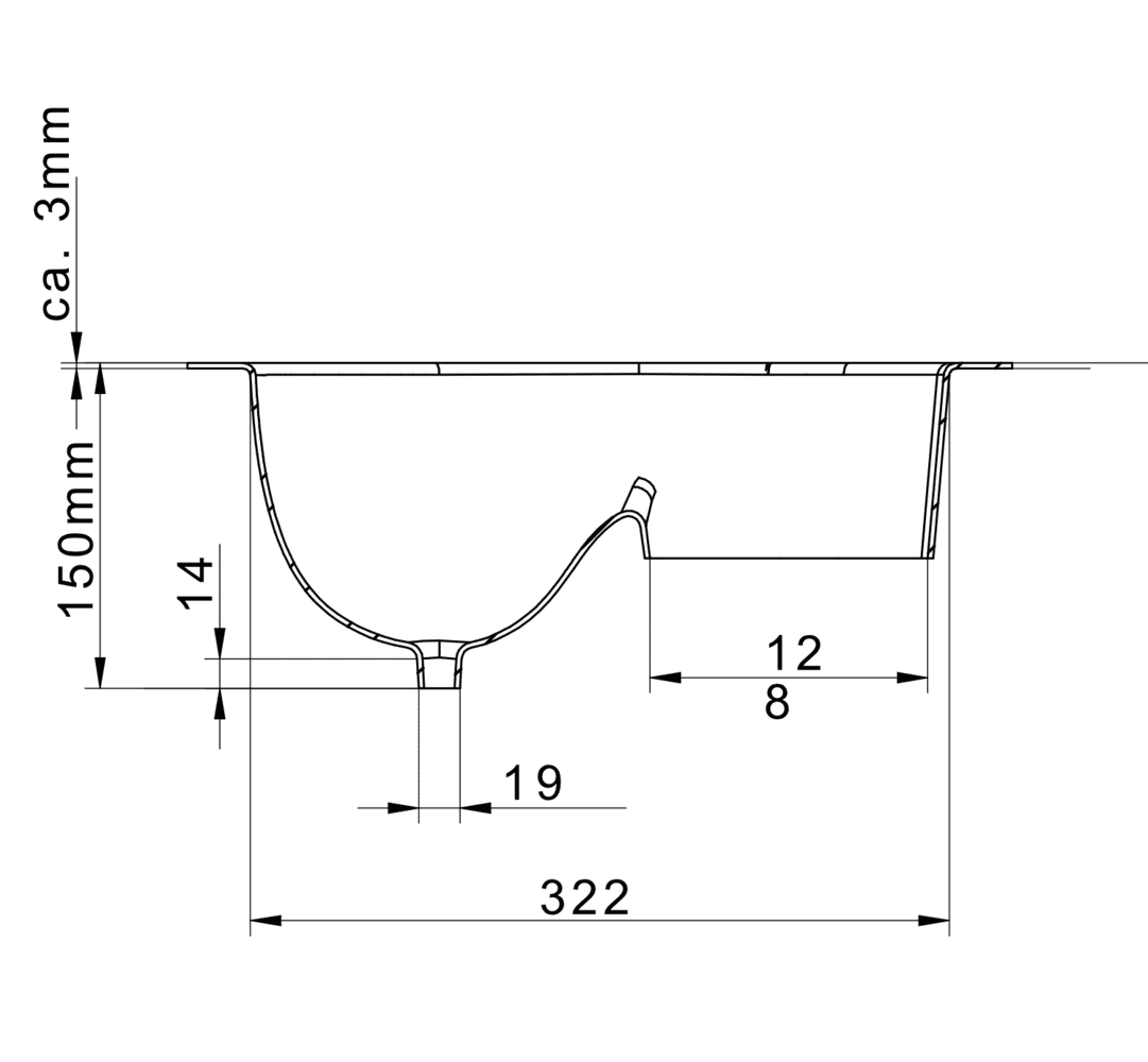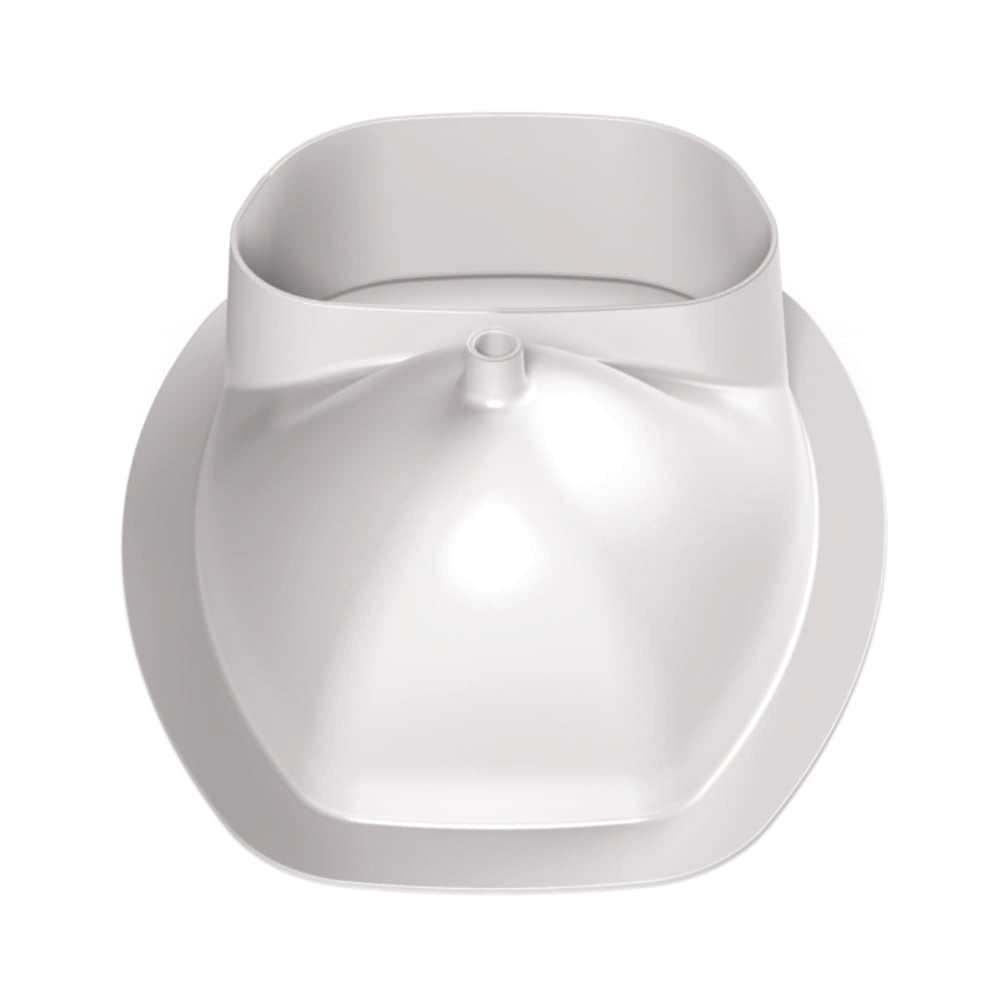 Weißer Trenneinsatz aus Kunststoff mit abgerundeter Vorderseite und mittiger Auslassöffnung.
