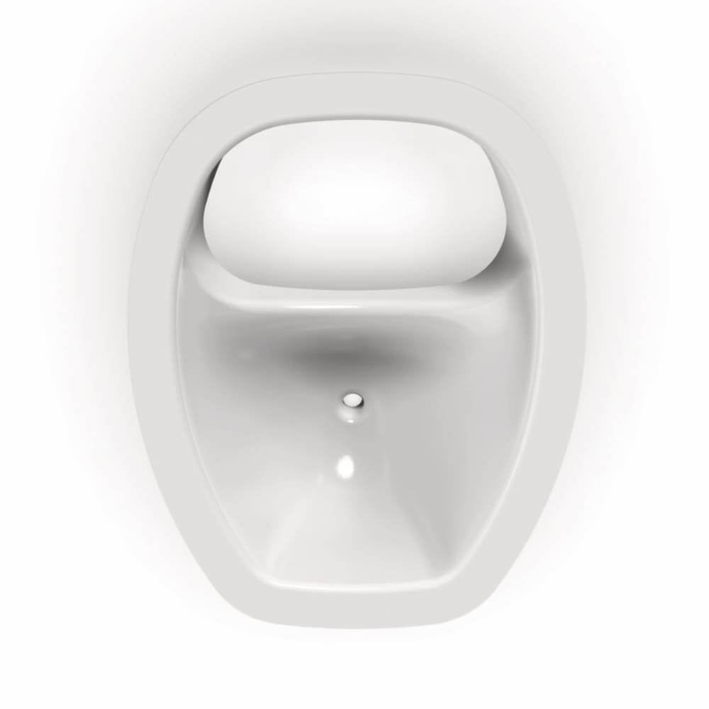Weißer Urintrennaufsatz mit großer Abflussöffnung aus glattem Kunststoff.