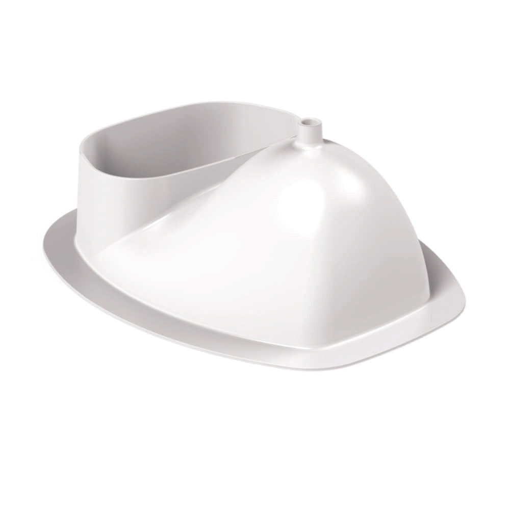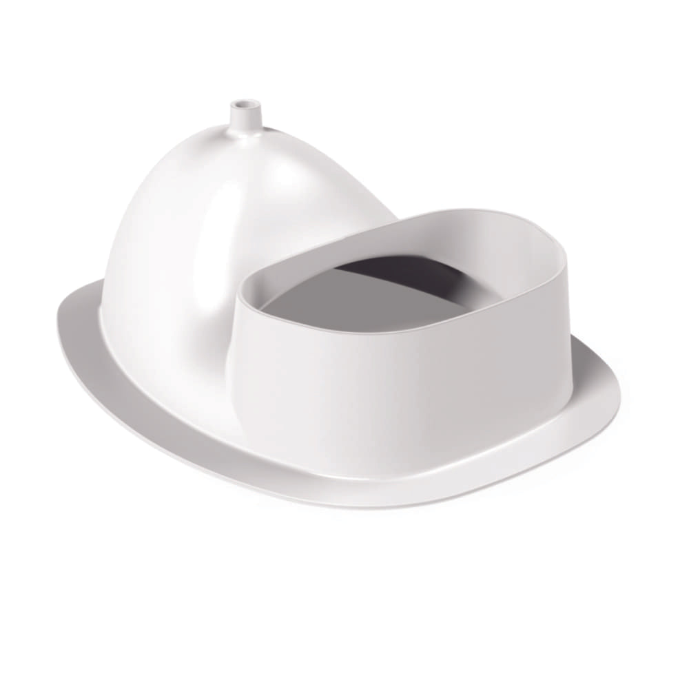 Weißer Urintrennbehälter aus Kunststoff mit abgerundeter Form und großer Öffnung.