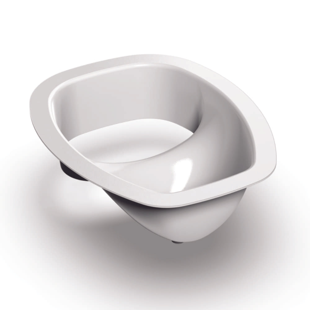 Weißer Trenneinsatz aus Kunststoff für Trenntoiletten, glatte Oberfläche.