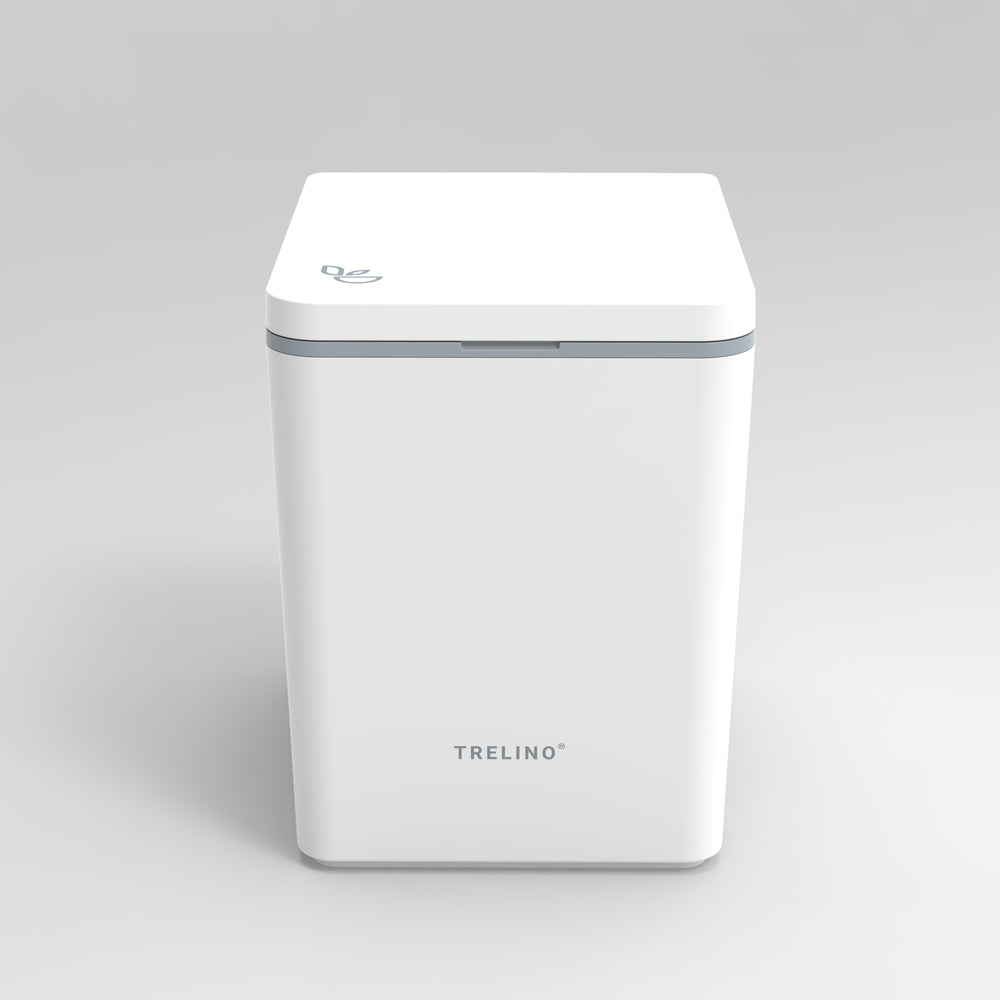 White, compact Trelino Evo L composting toilet with a smooth surface and rounded edges.