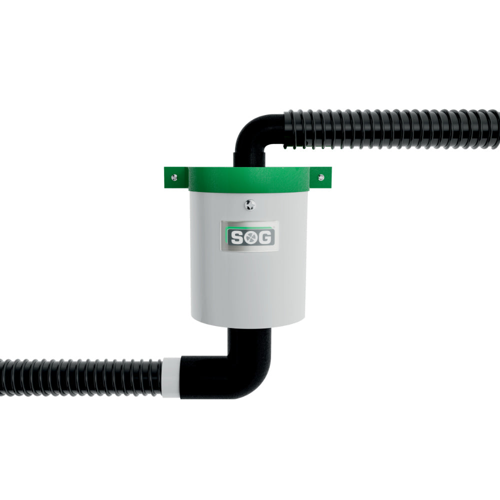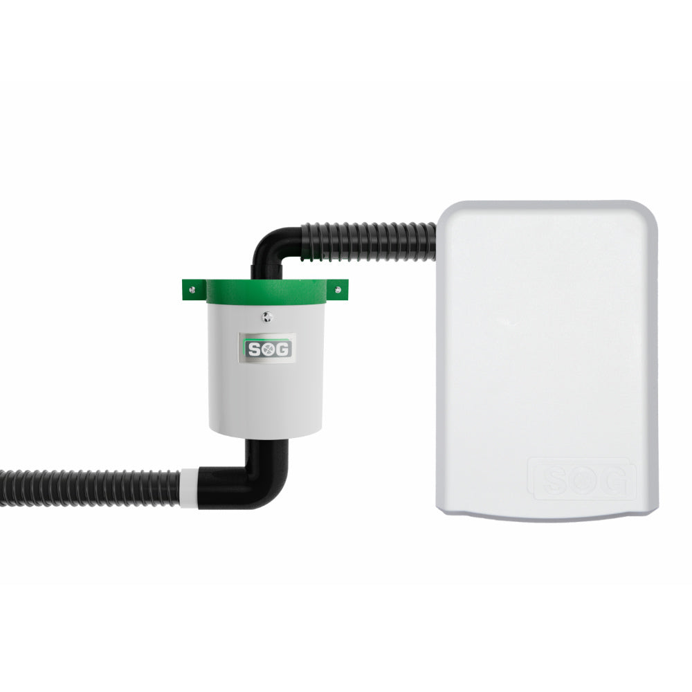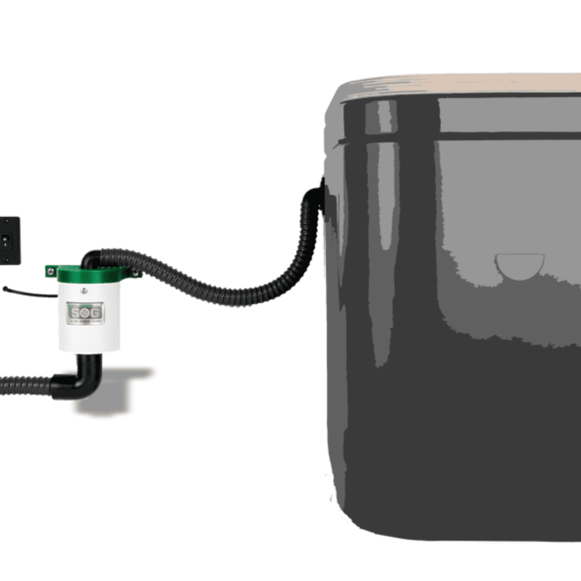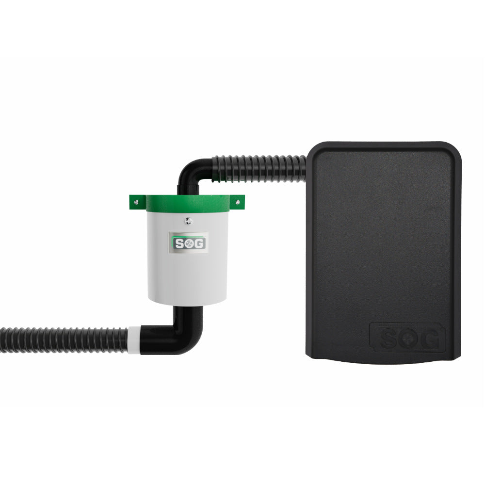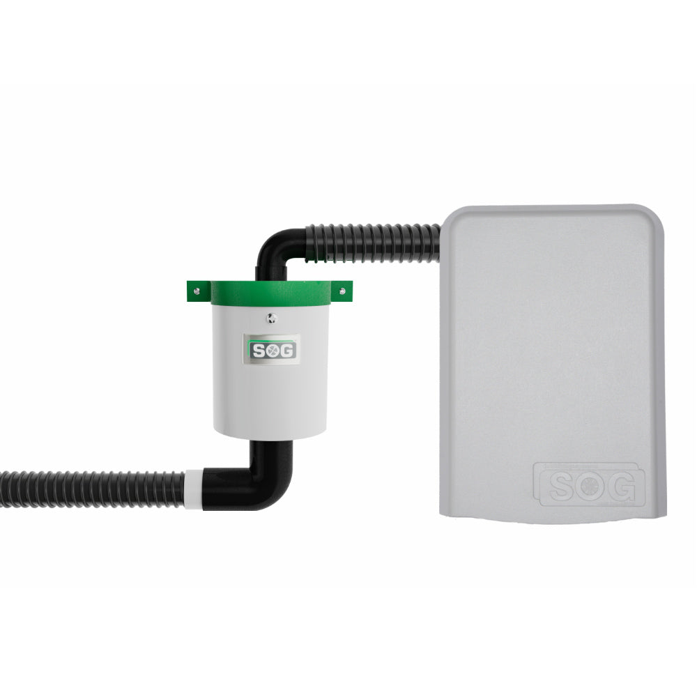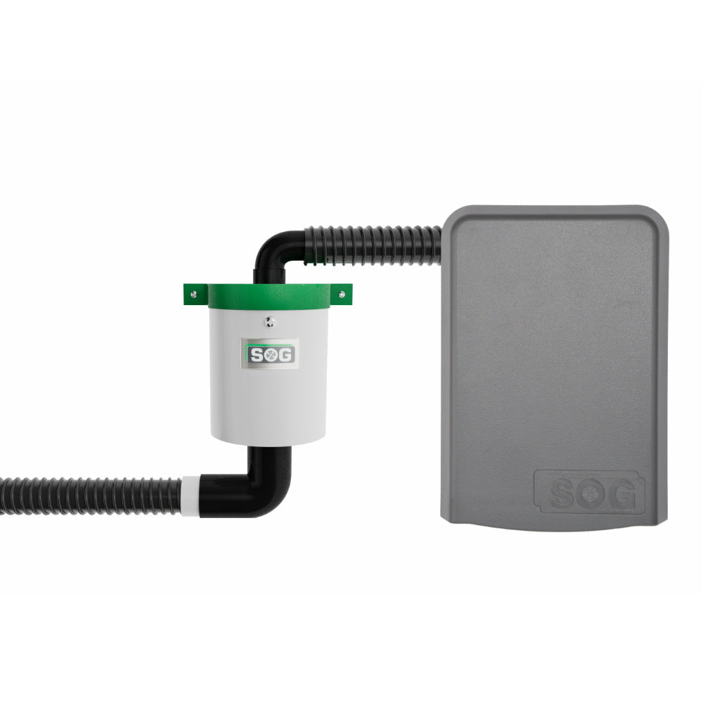 Graues SOG TT Lüftergerät mit schwarzem Schlauch und Lüfteranschluss.