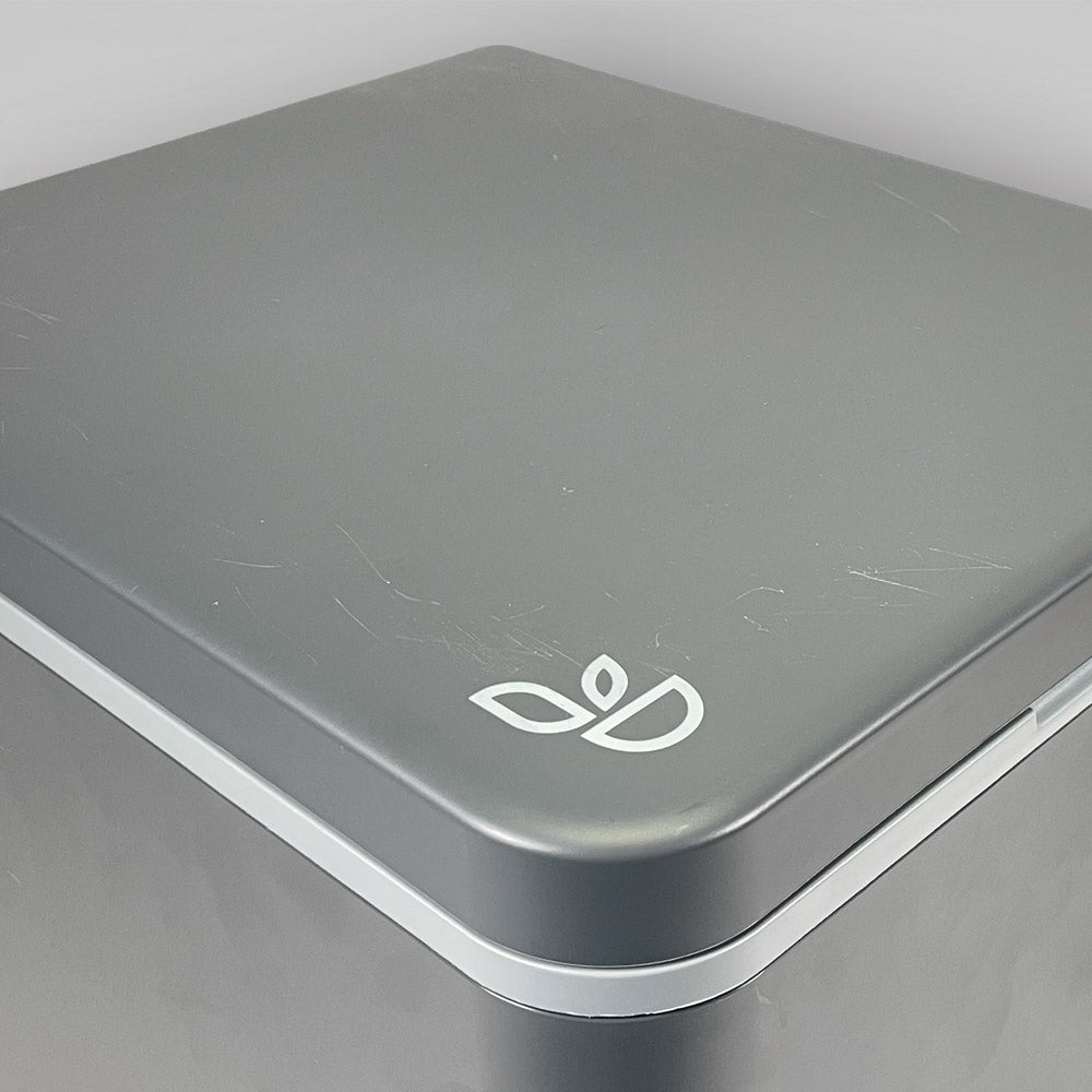Anthrazitfarbene, kompakte Trelino Evo L Trockentrenntoilette aus hochwertigem, schadstofffreiem Kunststoff und dezenter Logo-Prägung.